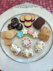 可愛いクッキーの下には5種類のクッキーを入れました。